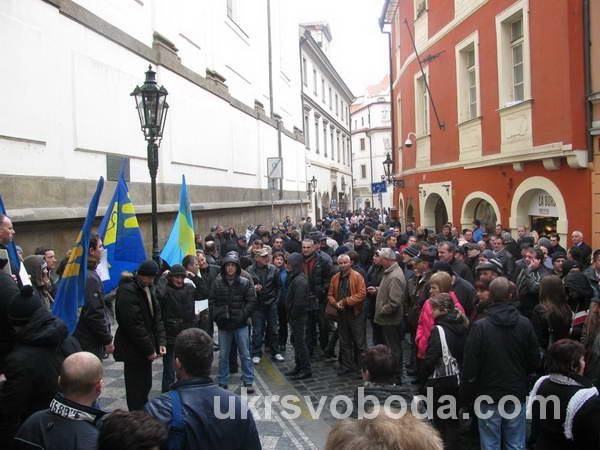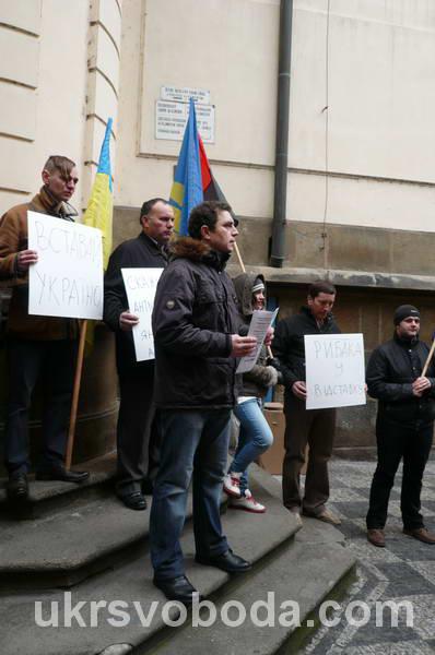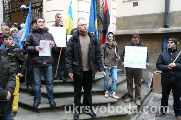 Митингующие также держали плакаты с требованиями Рыбака в отставку!, Вставай Украина!, Скажи – Нет! – антинародной политике Януковича.