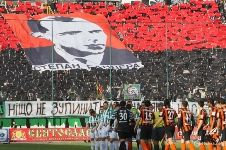 ‘Национальная Федерация называет инцидентами развертывания красно-черных флагов, крики Бандера, Шухевич – Герои Украины!, Скандирование ‘Свободу честным!’ и др., видя в этом вероятный предмет для дальнейших дисциплинарных санкций.