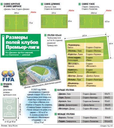 РАЗМЕРЫ ПОЛЕЙ КЛУБОВ ПРЕМЬЕР-ЛИГИ: