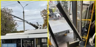 У Дніпрі евакуатор зачепив тролейбус із людьми і розтрощив двері. Рух тролейбусів ускладнено.