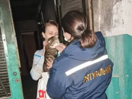 Кошку, которую спасли пожарные в доме на Слобожанском, вернули хозяйке