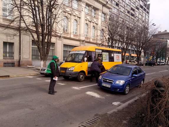 На центральном проспекте Днепра, у одной из городских маршруток обвалилась часть обшивки.