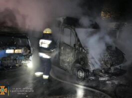 У Дніпрі згоріли два мікроавтобуси та легковик